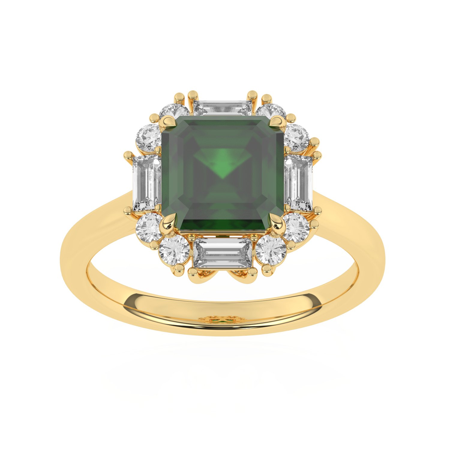 The warm, rich tones of yellow gold beautifully enhance the emerald’s green hue and the diamond’ sparkle, ensuring a timeless and luxurious appeal. - Prong Setting:
