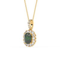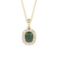Make a bold impression with this luxurious AAAA Zambian Emerlad and White Diamond Halo Pendant with chain, a masterpiece of elegance and authority. At its heart lies an oval-shaped deep blue AAAA Emerlad gemstone, celebrated for its symbolism of wisdom and leadership. Encircled by a SI-G/H white natual diamonds, this pendant exudes brilliance and sophistication, perfect for elevating any outfit with a touch of timeless luxury.