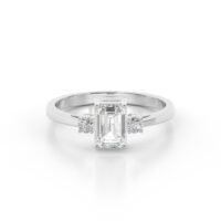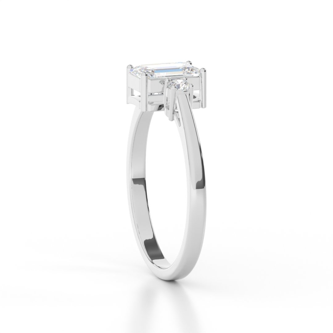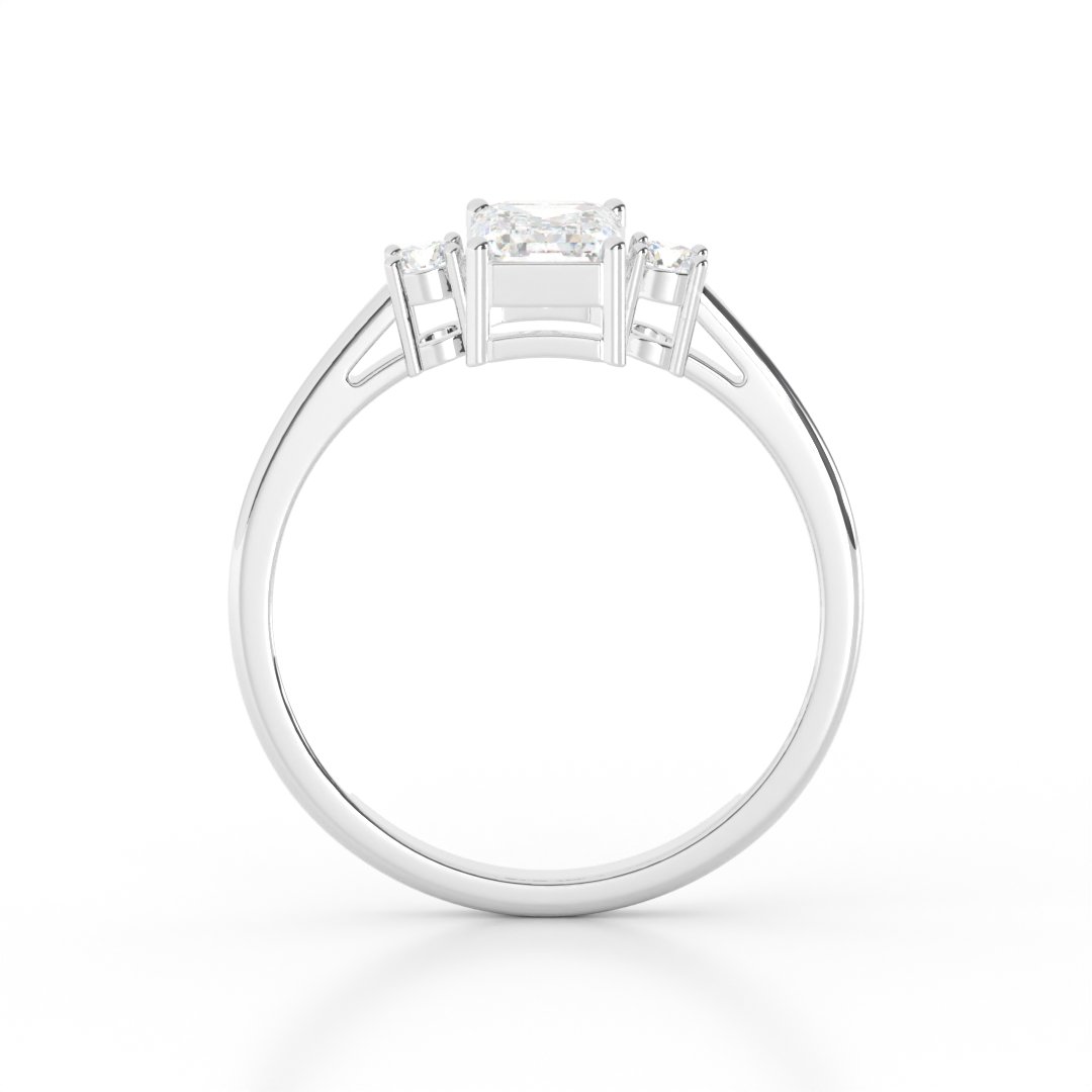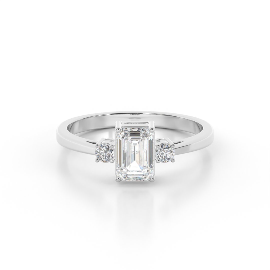 Timeless Elegance: The emerald cut brings a vintage charm, while the round side stones add brilliance and balance.
