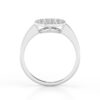 At its heart, a floral-inspired cluster of meticulously set round-cut diamonds sparkles with intense brilliance, framed by an outer circle of diamonds that amplifies the shimmer and depth. The high-polish white gold band offers a sleek and refined finish, making it perfect for daily wear or special occasions.
