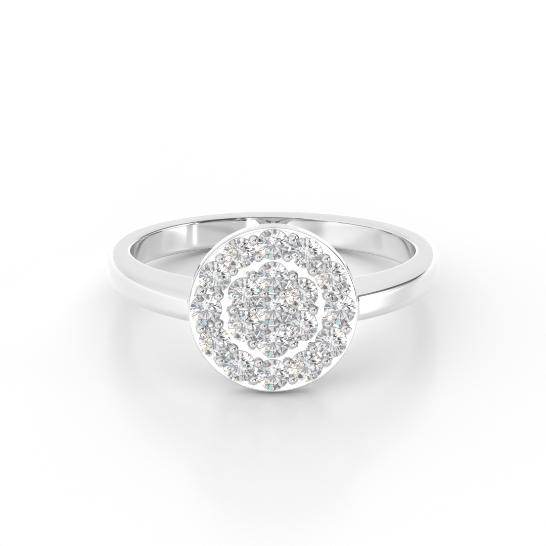 Elevate your elegance with this exquisite lab-grown diamond ring, crafted in radiant 9K white gold. Designed for the modern woman with timeless taste, this ring features a brilliant round cluster of ethically sourced diamonds, artfully arranged in two concentric circles to create a captivating halo effect.