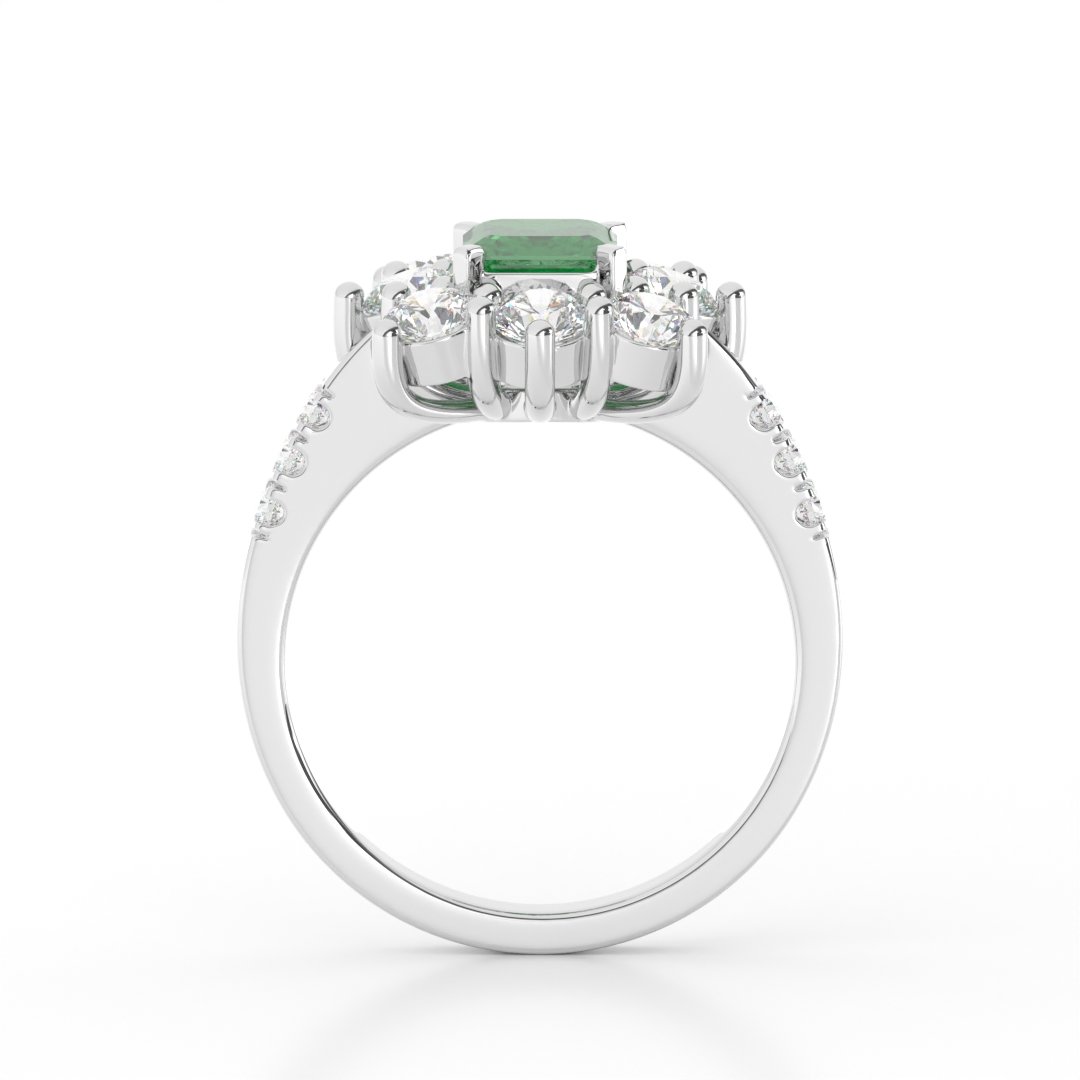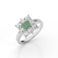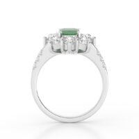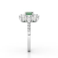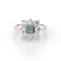 • Surrounding the emerald is a halo of sparkling diamonds, meticulously set to enhance the emerald’s color and brilliance.