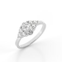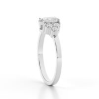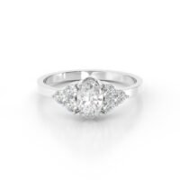 This design fuses classic luxury with contemporary flair. The oval diamond elongates the finger for a flattering look, while the clustered side stones add depth and fire to every movement. Made with eco-conscious lab-grown diamonds, it’s a meaningful choice for the modern romantic.