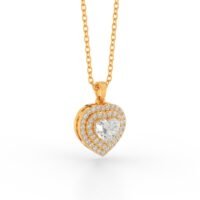 Celebrate love and elegance with this breathtaking 14K Yellow Gold Heart Diamond Double Halo Stud Pendant. At its center, a romantic heart-shaped diamond sparkles with timeless brilliance, certified by SGL (Solitaire Gemmological Laboratories) for authenticity and quality assurance.