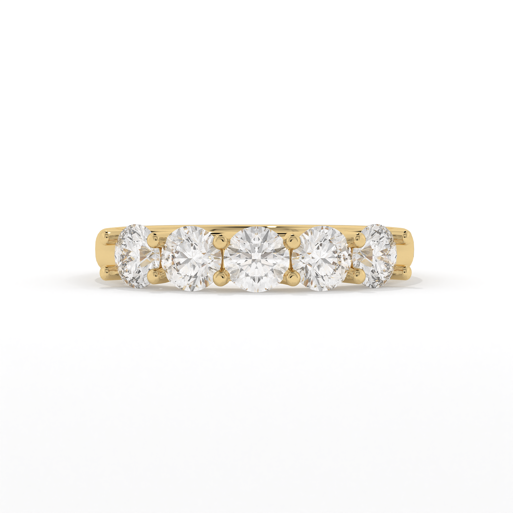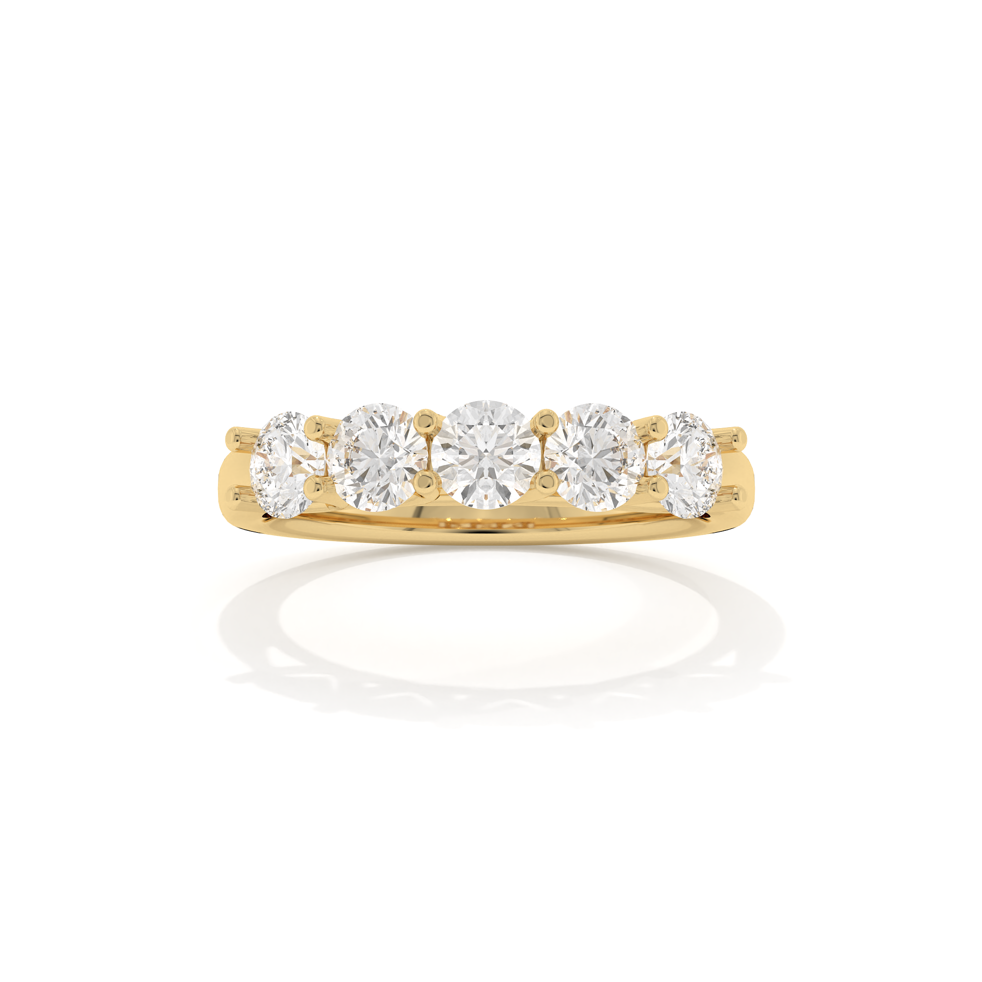 Celebrate your everlasting love with this stunning 14k Yellow & White Gold Five-Stone Eternity Ring. Featuring five dazzling round brilliant cut diamonds, totaling 1.07ct, this ring elegantly captures the infinite nature of your commitment.