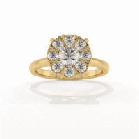 Celebrate the start of your forever with this beautifully feminine diamond cluster engagement ring, crafted in 14k Yellow & White Gold. This stunning ring features a 0.95 ct total diamond weight, showcasing a round brilliant cut center diamond surrounded by sparkling diamonds in a delicate, floral-inspired design.